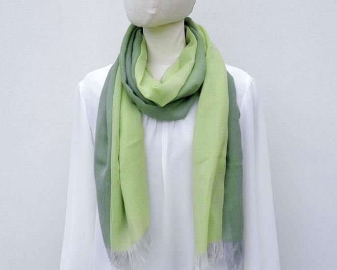 肌触りの良い上質なウールを軽やかに織り上げた、2色合わせウールガーゼストールです。