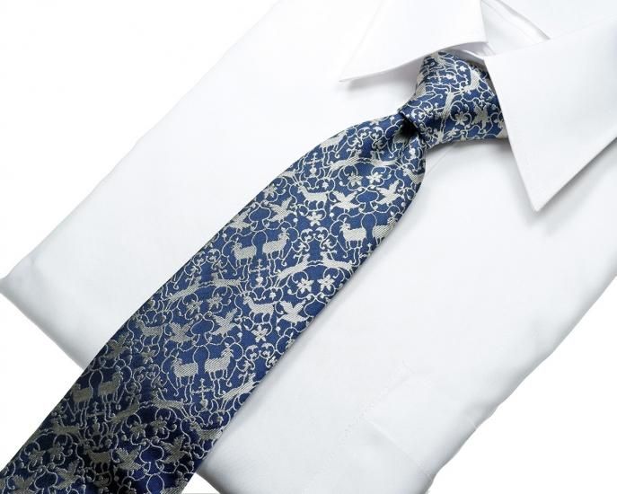 ネクタイ 動物ダマスク ミッドナイトブルー