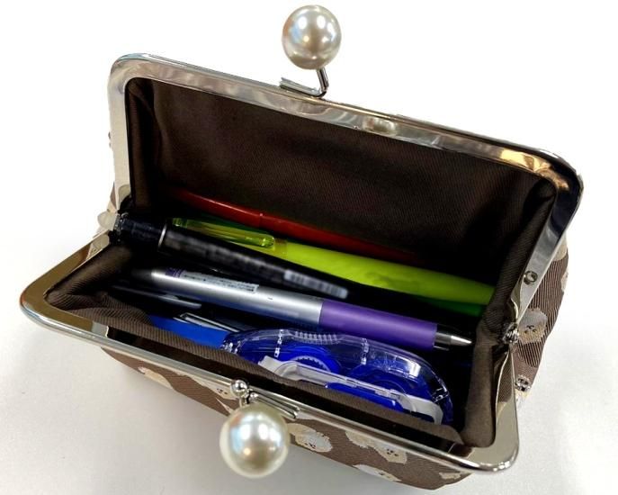 パールの玉がワンポイント!口もパカッと大きく開くので出し入れも簡単。
