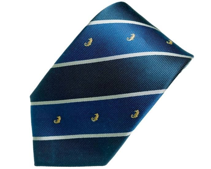 ネクタイ 干支ストライプ(辰)タツノオトシゴ 納戸×青