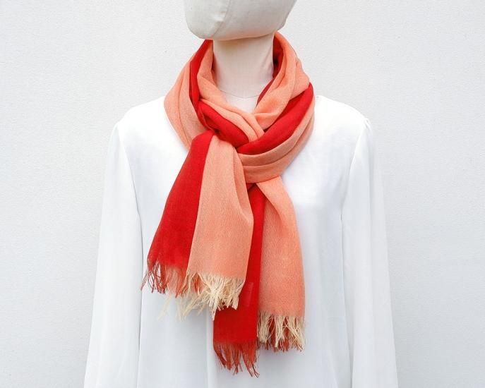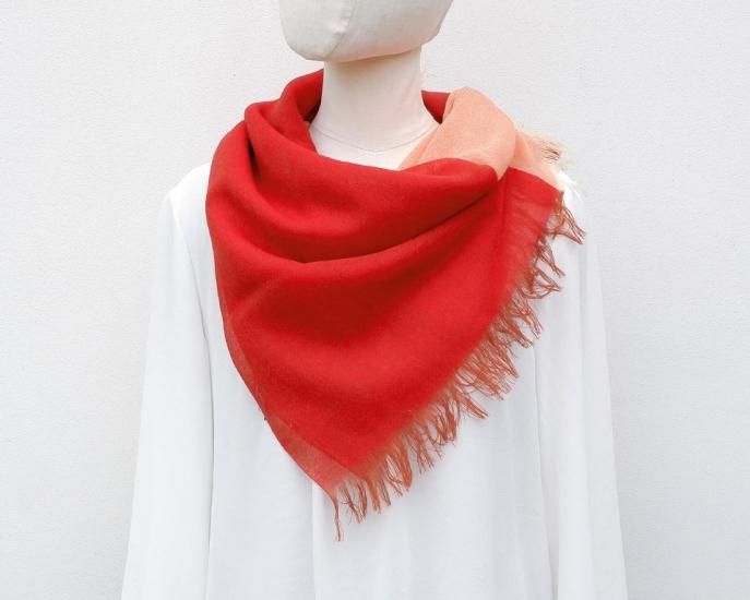 肌触りの良い上質なウールを軽やかに織り上げた、2色合わせウールガーゼストールです。